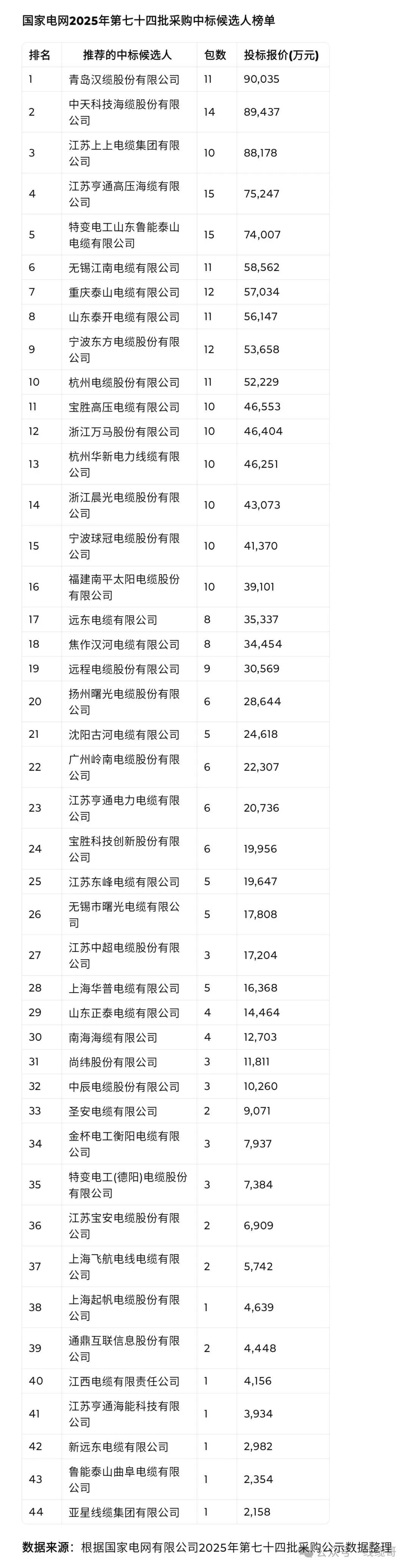 国家电网有限公司2025年第七十四批采购(输变电项目第五次变电设备(含电缆)招标采购)(招标编号:0711-250TL10411039)推荐的中标候选人,已于2025年11月3日正式揭晓。